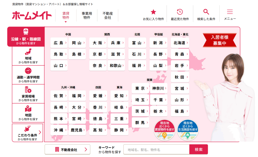 また、オンライン内見の映像クオリティが高く、間取りだけでは分からない生活動線や部屋の使い勝手まで見えるような案内が特長。地方から上京する人や、短期間で家を決めたい人からの支持が厚い会社です。
