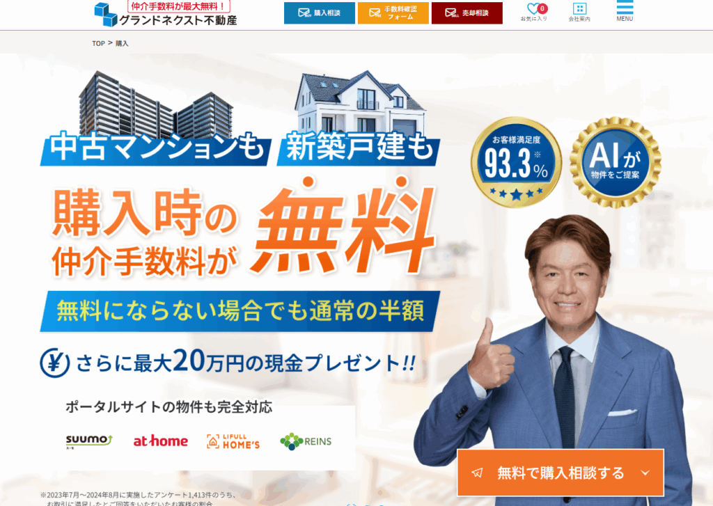 グランドネクスト不動産は、東京・神奈川・千葉・埼玉をカバーする売買仲介専門会社です。AIを活用した物件提案や自動査定機能により、適正価格での購入や売却が可能です。仲介手数料無料のサービスを提供しており、現在は成約者向けに現金プレゼントキャンペーンも実施しています。スタッフの対応が丁寧で迅速と評判で、初めての不動産購入にも安心です。
