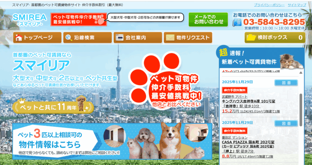 | 公式サイト | ペット可賃貸のスマイリア公式 |